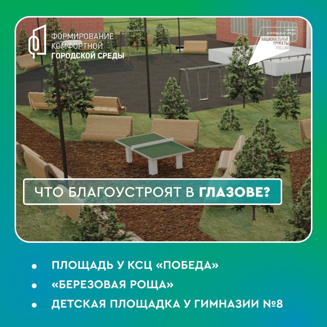 Что изменится в Глазове в 2023 году: площадь у КСЦ «Победа», детская площадка у гимназии №8 или Березовая роща на улице Глинки?